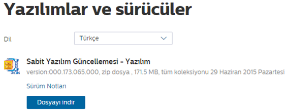 Not: Yazılım güncelleme genellikle sıkıştırılmış zip dosyası halindedir ve dosyayı açmak için özel bir yazılım gerekir (örn. Winzip veya WinRar).